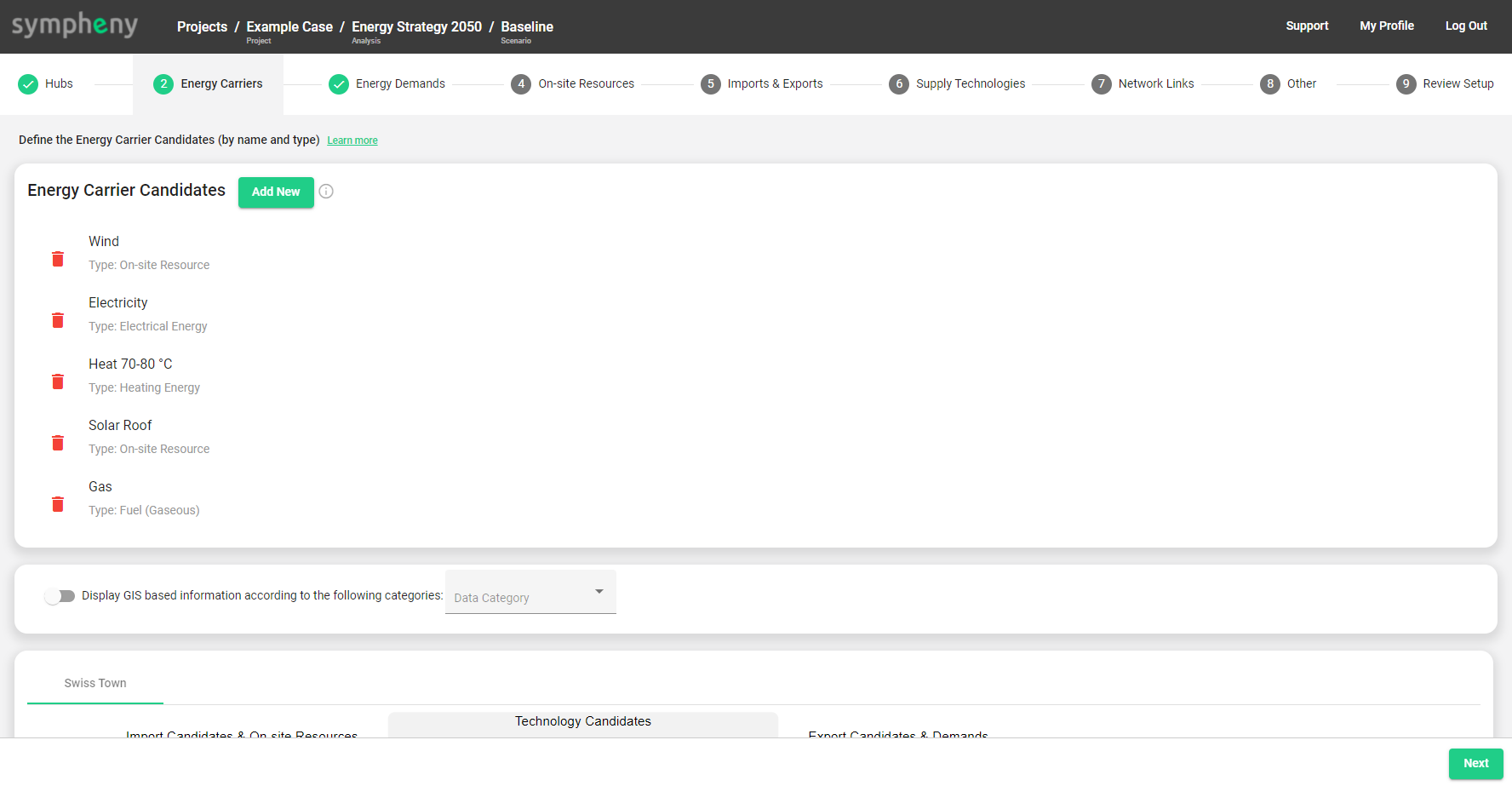 You can always return to this step to add further energy carriers later. If you try to add e.g. a supply technology which is not in your list of energy carriers, the software will ask you if you would like to add the missing energy carrier to this list.