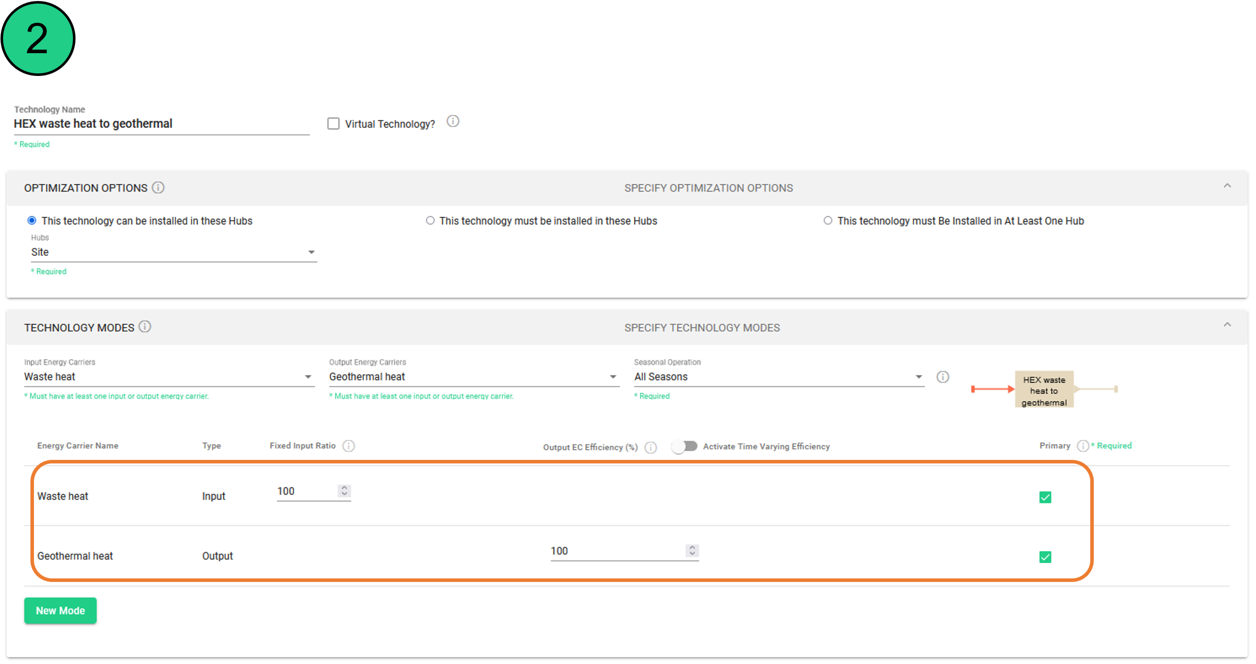 It should be noted that the energy flow to storage technologies cannot be forced. In some situations, users might wish to force a water flow that circulates through boreholes. This is a current modeling limitation and would be addressed with detailed control options in the future.