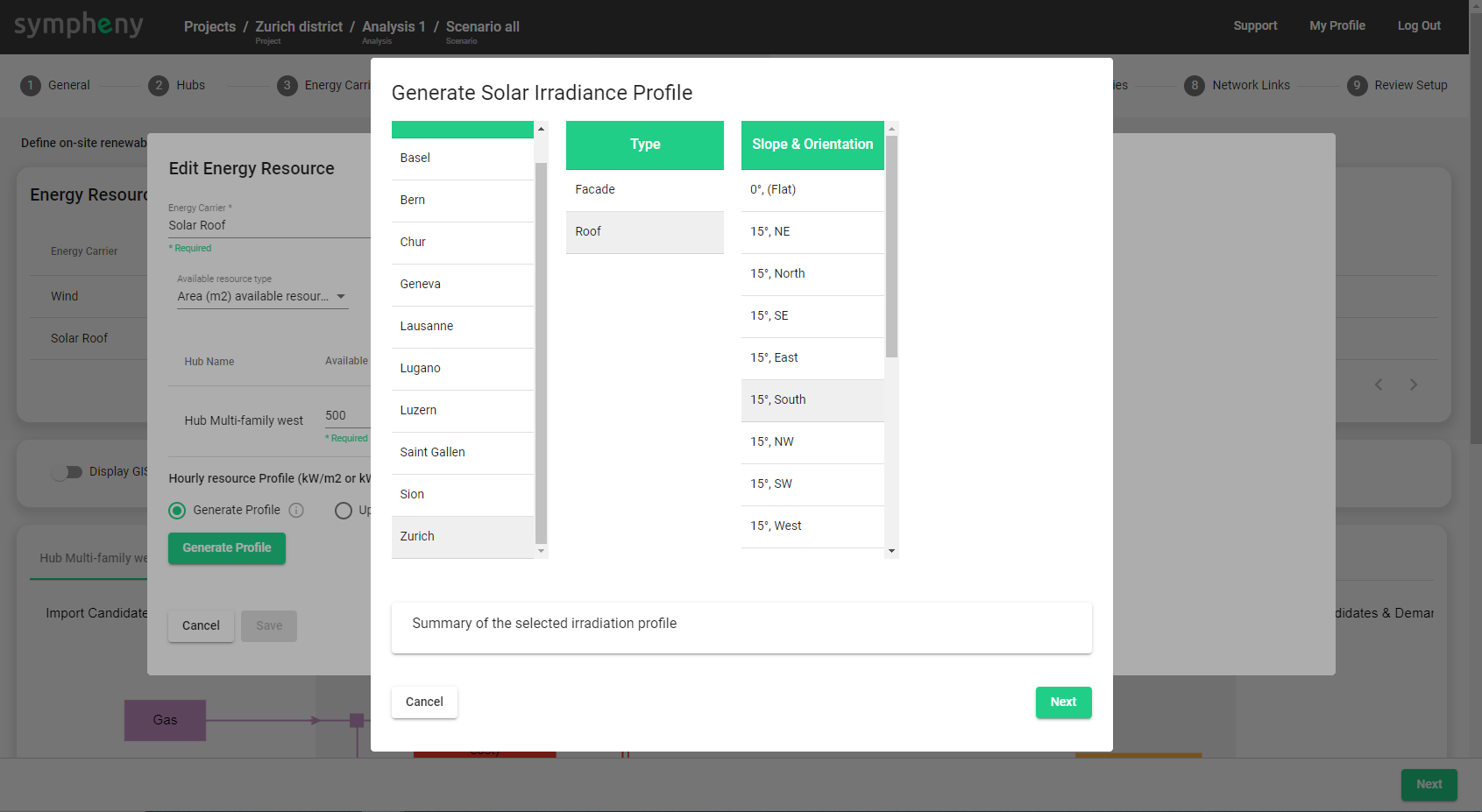 → Generate Profile: This allows you to take advantage of Sympheny's database of hourly resource profiles.