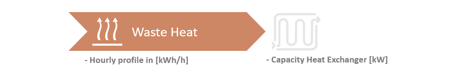 In this case, the installed technology size is directly linked to the optimal operational profile. For example, the optimal capacity of Heat Exchanger Technology that utilize Waste Heat is defined by the maximum value of the Optimal Operation Profile in [kWh/h].