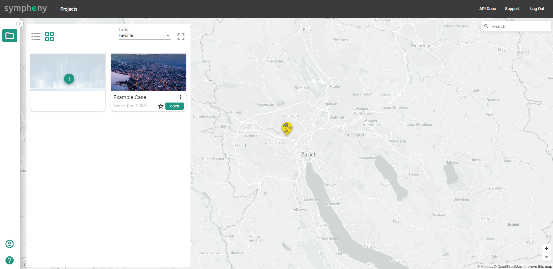 After logging in, you arrive to your Projects Navigator. Here you can geolocate all the projects you have created so far. The project “Example Case” is there to show you what a project could look like. Let’s start!