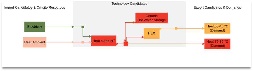 - Modellierung mehrerer Temperaturniveaus mit einer Standard-Wärmepumpe